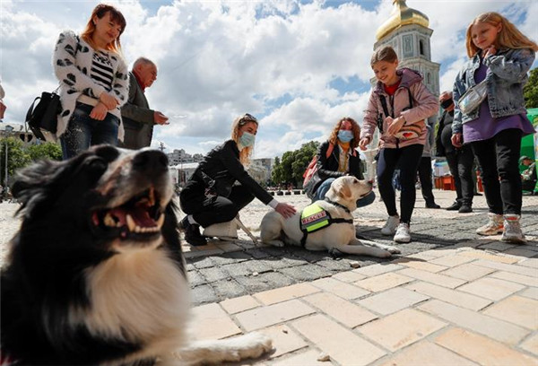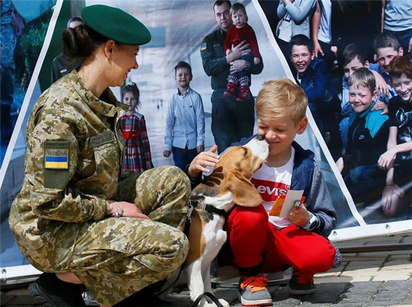 當地時間6月1日,在烏克蘭基輔,孩子們參加由烏克蘭內政部主辦的包括員警、邊防軍和救援人員在內的慶祝國際兒童節的演出。