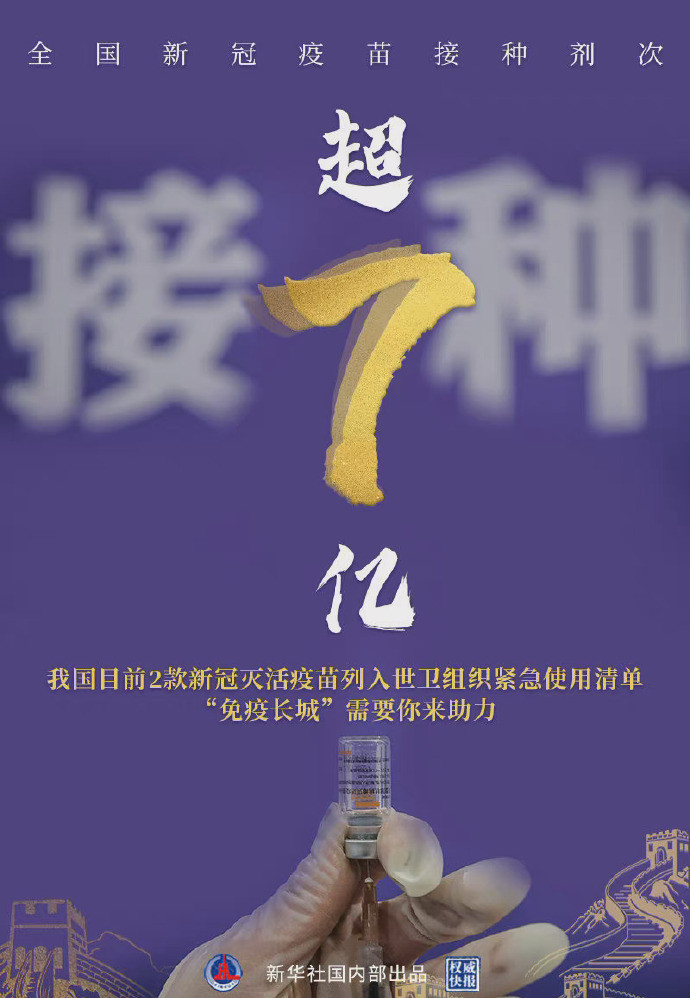 國家衛健委6月3日通報,全國新冠疫苗接種超過7億劑次。5月以來,疫苗接種進入「加速跑」。防控形勢依然嚴峻,切莫麻痹大意。共築「免疫長城」,需要你來助力。