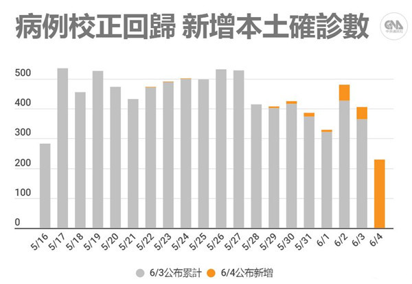 指揮中心表示,今日新增之339例本土病例,為170例男性、169例女性,年齡介於未滿5歲至100多歲,發病日介於4月1日至6月3日。另校正回歸個案133例中,為57例男性、76例女性,年齡介於未滿5歲至80多歲,發病日介於5月18日至6月2日。