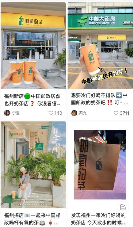 據內地網友爆料,位於福建省的一家中郵大藥房開出了一家名為「郵氧的茶」奶茶店。從大眾點評信息來看,奶茶店提供的品類包括純茶、奶茶、水果茶和果奶,共14種不同茶飲,價格在7-23元不等。