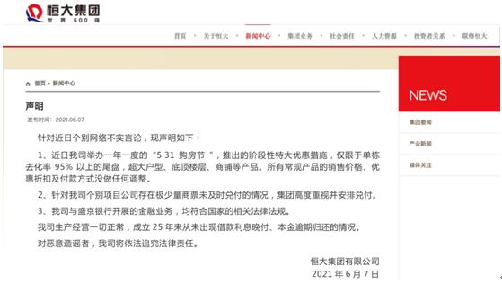 中國恒大(03333)今日針對網絡傳聞發聲明,指公司生產經營一切正常,成立25年來從未出現借款利息晚付、本金逾期歸還的情況。針對公司個別項目公司存在極少量商票未及時兌付的情況,集團高度重視並安排兌付。對惡意造謠者,公司將依法追究法律責任。