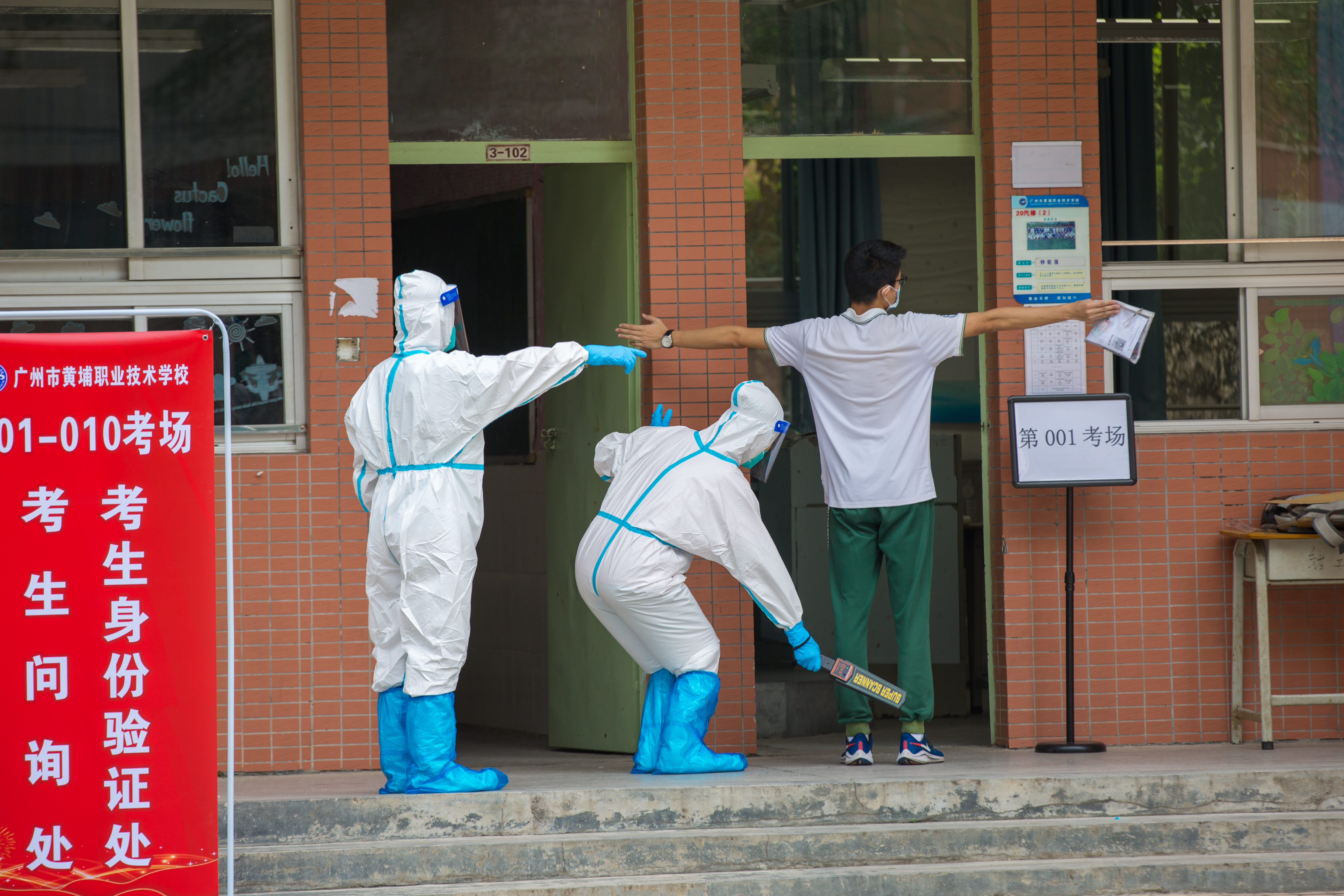 金道中學是廣州市荔灣區高風險地區高考考點,校長譚東明6月7日連線記者表示,學校啟動了緊張有序的籌備工作,針對考生流動性強所住環境複雜等特點,組織專人對全校進行三天的全面徹底消毒,不留死角,對考場、洗手間等重點區域進行環境監測。