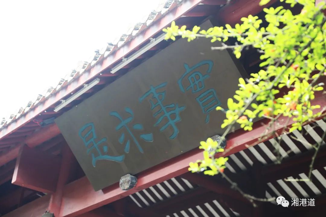 據當地工作人員介紹,1917年至1919年,毛澤東在嶽麓書院半學齋居住,從其宿舍打開窗戶,就能看到書院講堂「實事求是」匾額,在「低頭不見抬頭見」的朝夕相處中,「實事求是」成為毛澤東思想的重要組成部分,嶽麓書院也成為毛澤東思想的啟蒙之地。 「大學之道,在明明德,在新民,在止於至善」。這是《大學》開宗明義的第一句話,亦是新民學會名字的來源。
