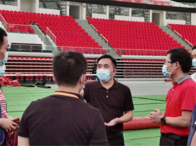 廣州金域醫學集團首席運營官、副總裁謝江濤謝江濤(右二)在廣州體育館氣膜方艙實驗室指導建設工作