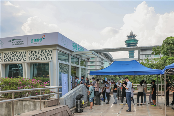 6月9日上午8點,核酸檢測點正式迎來第一批需要核酸檢測的旅客,截至晚上7時,已累計採樣近1000例,平均4小時出具報告。最快的一位旅客僅用了2小時40分即拿到檢測結果。