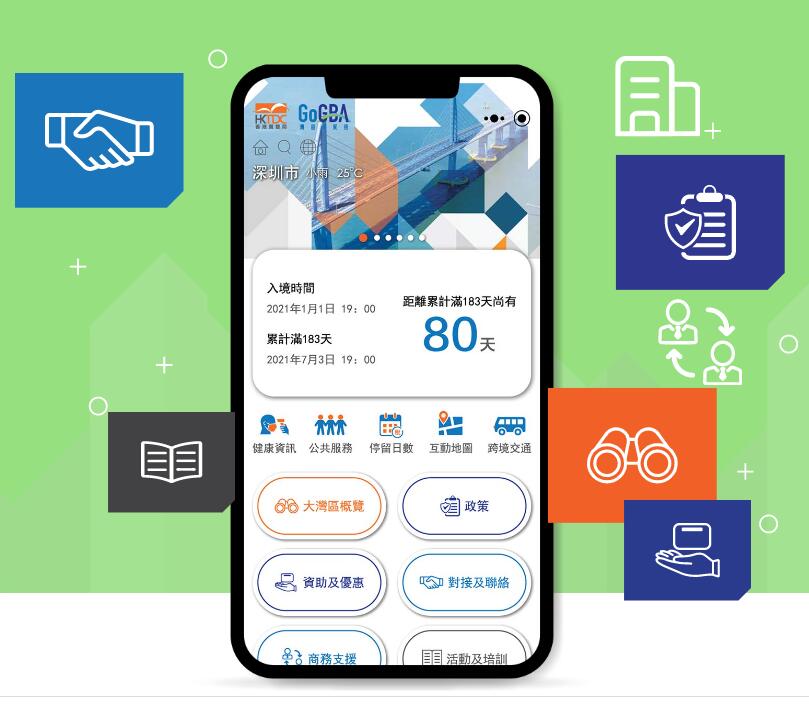第一,這是「灣區經貿通」數字平台,提供區內資訊及跨境商務工具。平台與廣東省、大灣區各市政府及有關部門合作,提供市場政策及市場的信息、有關優惠補貼、商務支援等大灣區重要經貿資訊。