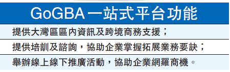 據介紹,GoGBA一站式平台會從3個大方向全方位支持及協助港商及外商拓展大灣區內地市場——