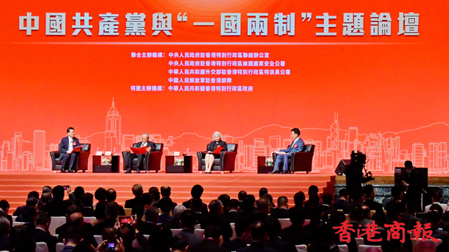 中國共產黨與「一國兩制」主題論壇今天(12日)上午在香港會展中心舉行。中聯辦主任駱惠寧作題為《百年伟业的「香江篇章」》的主旨演講,行政長官林鄭月娥、全國政協副主席梁振英先後致辭。特邀嘉賓梁愛詩、劉兆佳、陳勇,圍繞論壇主題進行了探討分享。