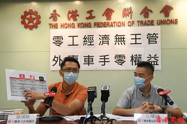 工聯會要求政府盡快就零工經濟進行研究,解決零工的僱傭身份判定問題,以及就零工平台營運立法,建立本地發牌制度。(記者葉珮如 蔡啟文/攝)