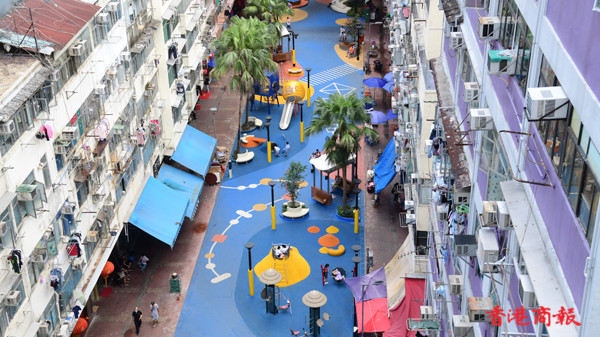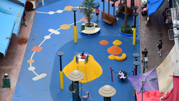 荃灣二陂坊遊樂場近月已完成大翻新,麻雀雖小,五臟俱全,這個由本地非牟利團體協助設計、資助翻新的公園,在附近唐樓包圍下,整個公園都帶來全新感覺。遊樂場以「社區客廳」為主題,加入鮮艷亮麗的藍、黃、橙色,為這個唐樓林立及荃灣社區增添活力。