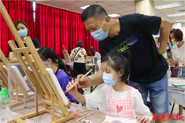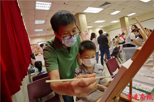 今天(20日)是父親節,大部分子女都會以陪父親喝茶吃飯作為慶祝活動。在工聯會九龍東團隊舉辦的「親子Art Jamming及兒童電子產品沉迷對策工作坊」上,邀請了30對家庭一起畫畫,當中有不少是子女和父親一起繪畫的,作為父親節慶祝活動,平時忙於工作的爸爸相對比較少與子女相處,看着他們你一筆我一筆共同完成一幅漂亮的圖畫,感覺場面很溫馨。(馮瀚文 攝)