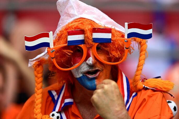 當地時間6月17日,在荷蘭阿姆斯特丹,歐國盃荷蘭對奧地利的比賽前,荷蘭球迷出現在看台上。