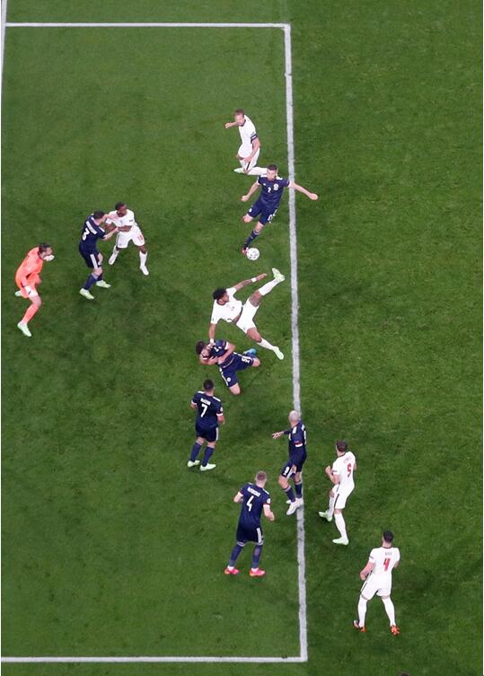 當地時間6月18日,在英國曼徹斯特,歐國盃英格蘭對陣蘇格蘭的比賽瞬間。