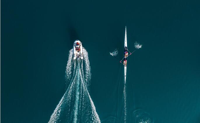 當地時間6月19日,克羅地亞賽艇運動員在佩魯卡湖中參加練習,備戰東奧。