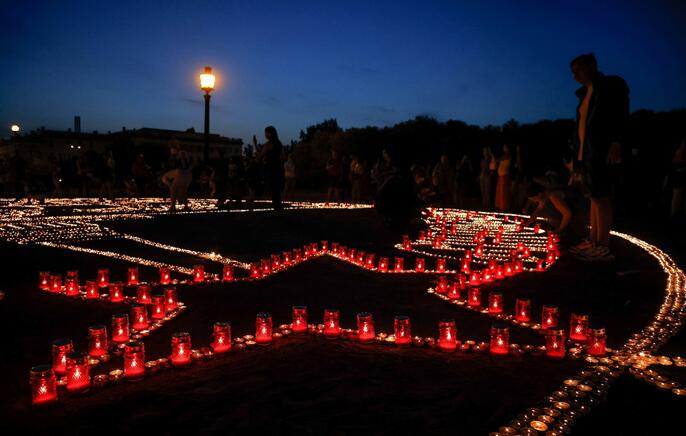 當地時間6月22日,在俄羅斯聖彼德堡,人們點燃蠟燭,以此銘記德國入侵蘇聯80周年。
