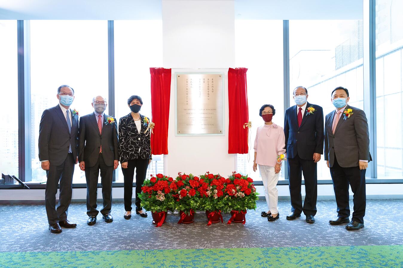 公大指莫秀琼遺囑執行人莫瑋坤及葉玉冰、公大副校監李業廣、校董會主席黃奕鑑、副主席黃天祥及校長林群聲主禮,黃奕鑑指感謝莫瑋坤及葉玉冰代表莫秀琼慷慨捐贈,支持公開大學興建賽馬會健康護理學院,這不僅是對大學過去30多年辦學理念的肯定,更鼓勵公大精益求精,致力推動健康及護理教育發展,提升本港相關人才專業培訓,為構建健康城市出一分力。