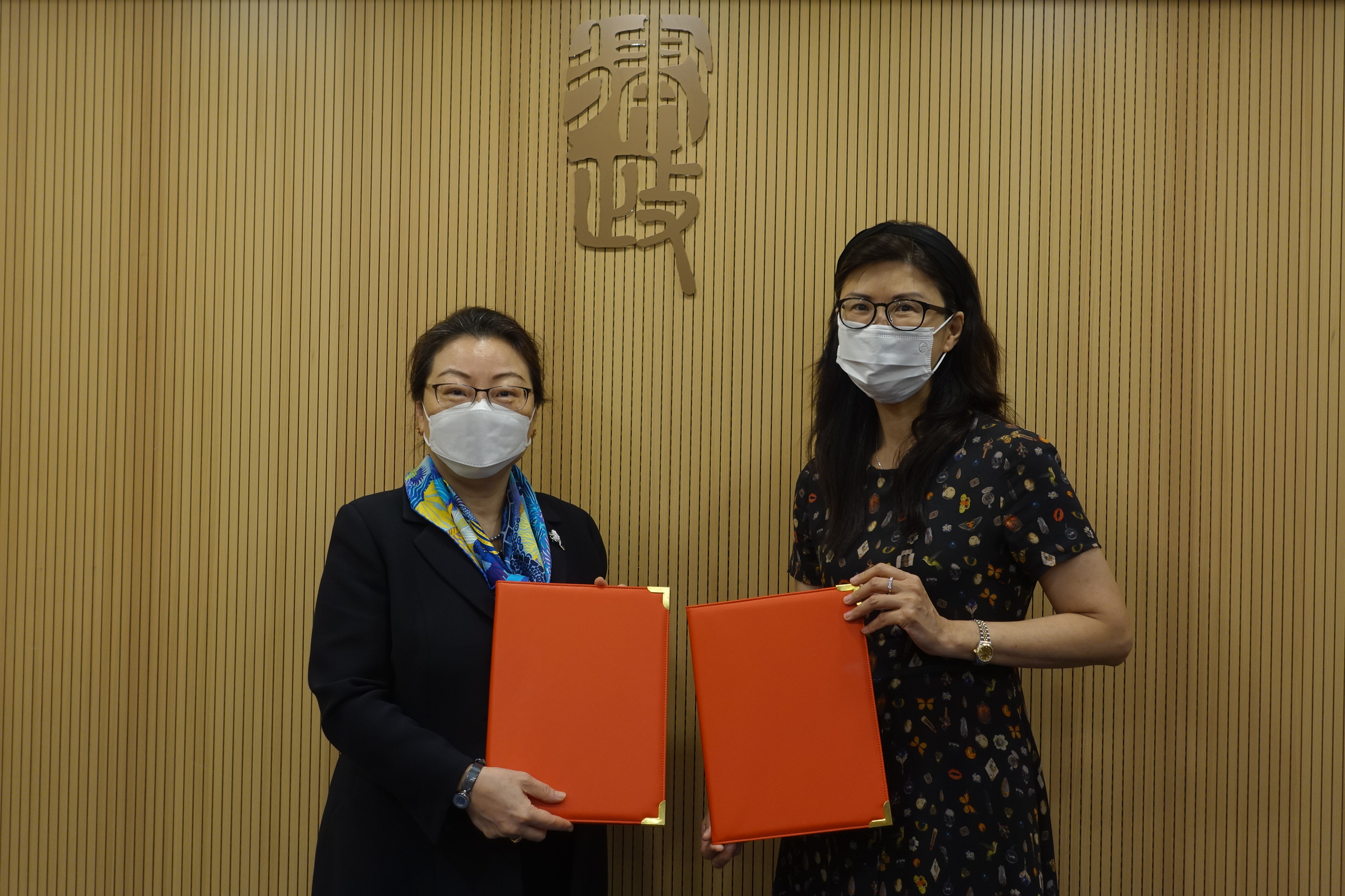 鄭若驊與彭韻僖在簽署儀式後交換諒解備忘錄。
