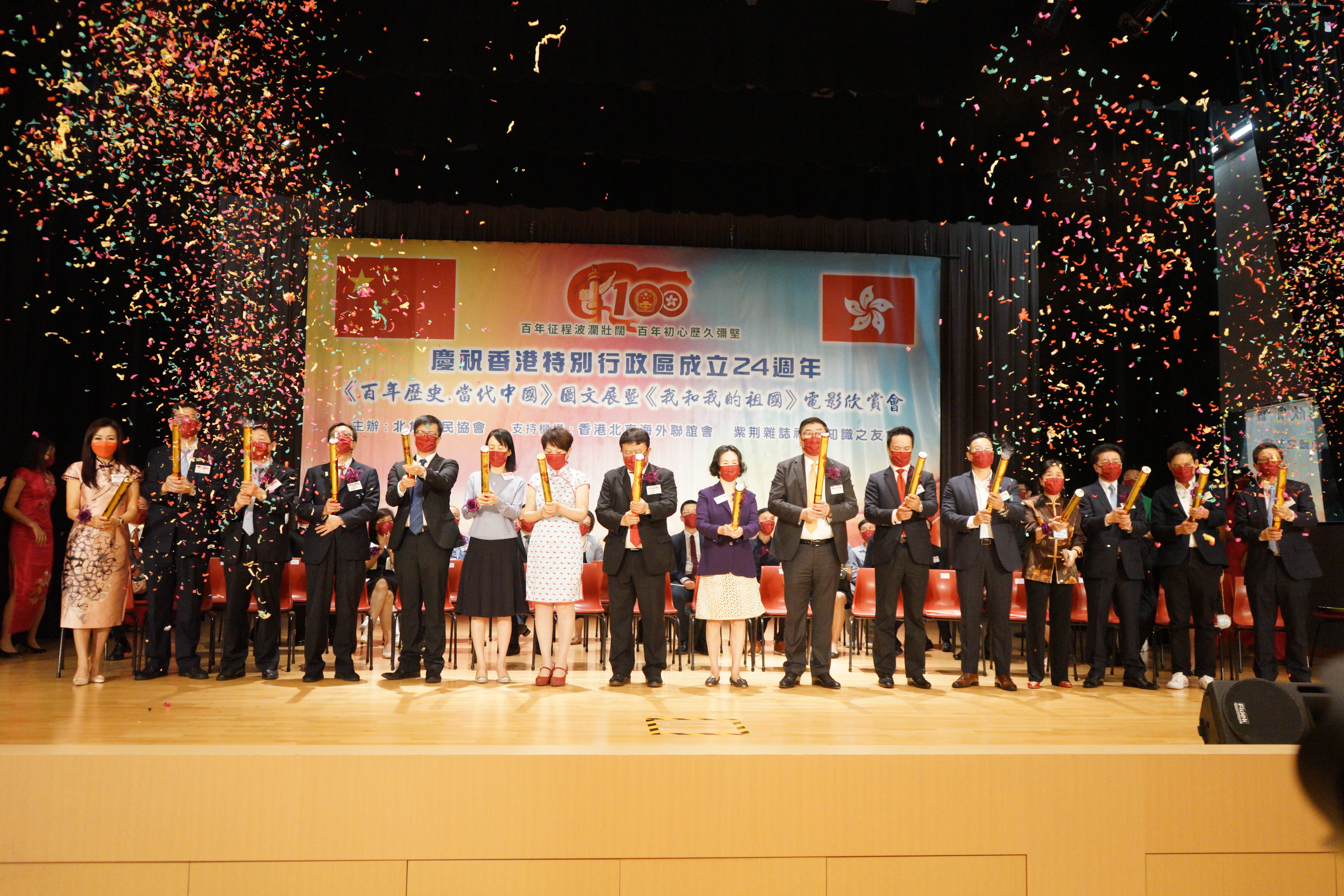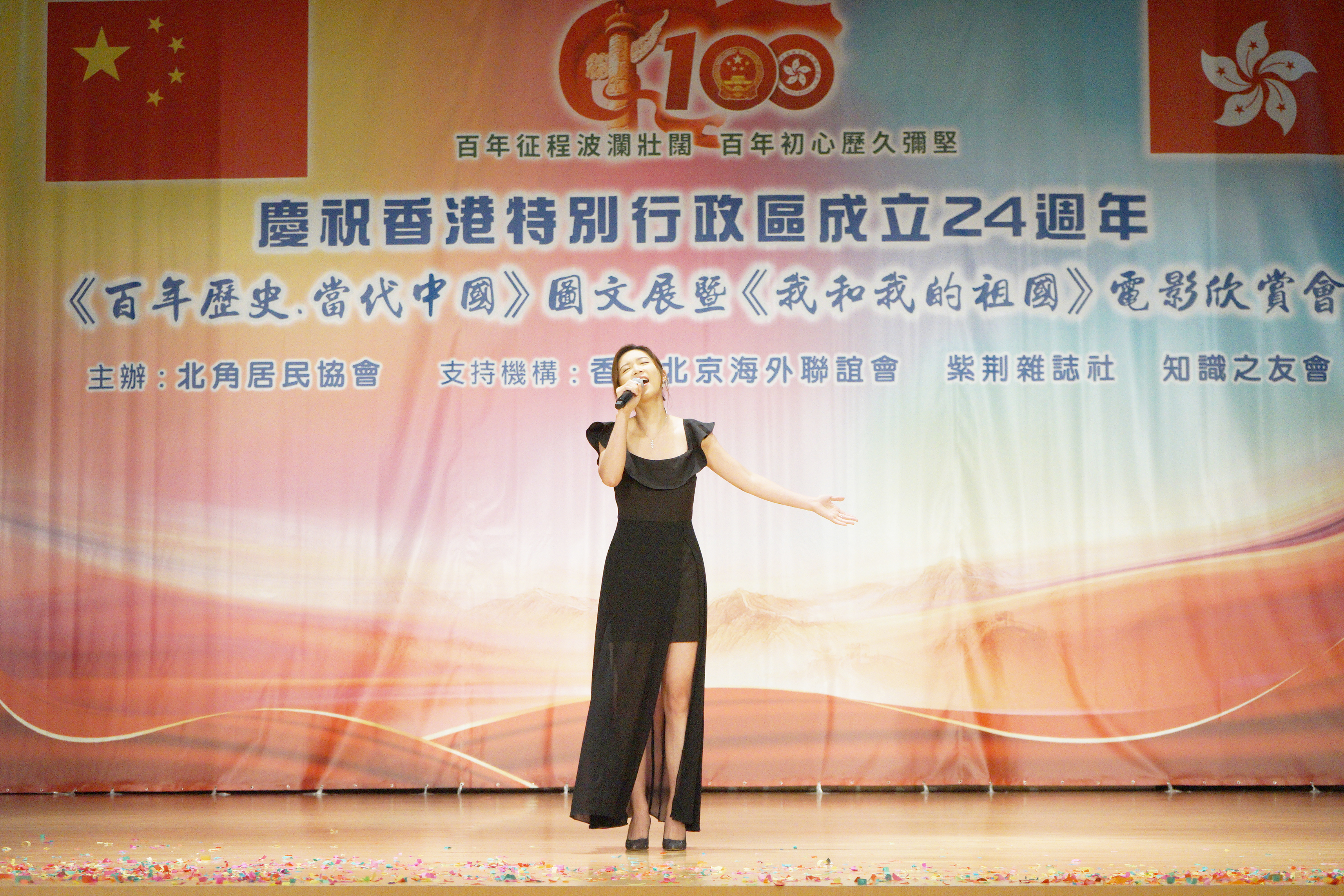 由北角居民協會主辦,紫荊雜誌社、香港北京海外聯誼會、知識之友會協辦的《百年歷史當代中國》圖片展暨《我和我的祖國》電影欣賞會開幕式,25日假北角社區會堂舉行。中聯辦港島工作部副部長范克勝、北京市政協常委何超瓊、東區民政事務助理專員彭明軒、北角居民協會主席李莉應邀主禮並發表致辭。現場不少家庭揮舞國旗及區旗,一片紅海,氣氛熱烈。
