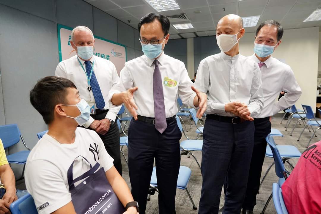 公務員事務局局長聶德權與環境局局長黃錦星及中電總裁蔣東強到場為職員打氣,並一起了解接種情況。中電為職員在兩個不同場地安排了兩場科興,兩場復必泰的外展接種服務,方便在偏遠地方及市中心工作的同事接種,反應熱烈。