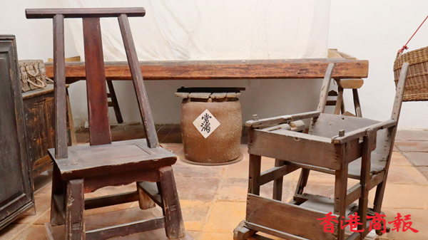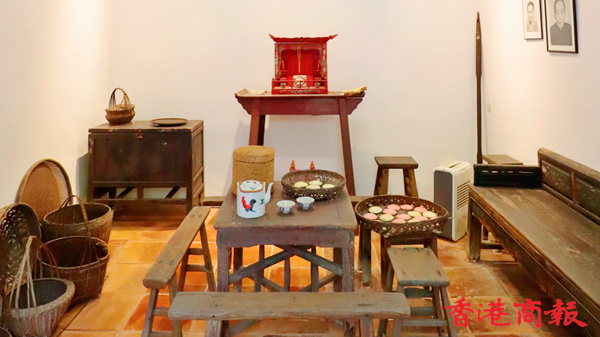「羅屋民俗館」藏品的內容主要介紹柴灣的歷史、羅屋的歷史和特色,以及當時客家人的生活習俗。屋內放有家私、農具、日用品等展品,以回復原村屋的面貌。(記者馮瀚文攝)