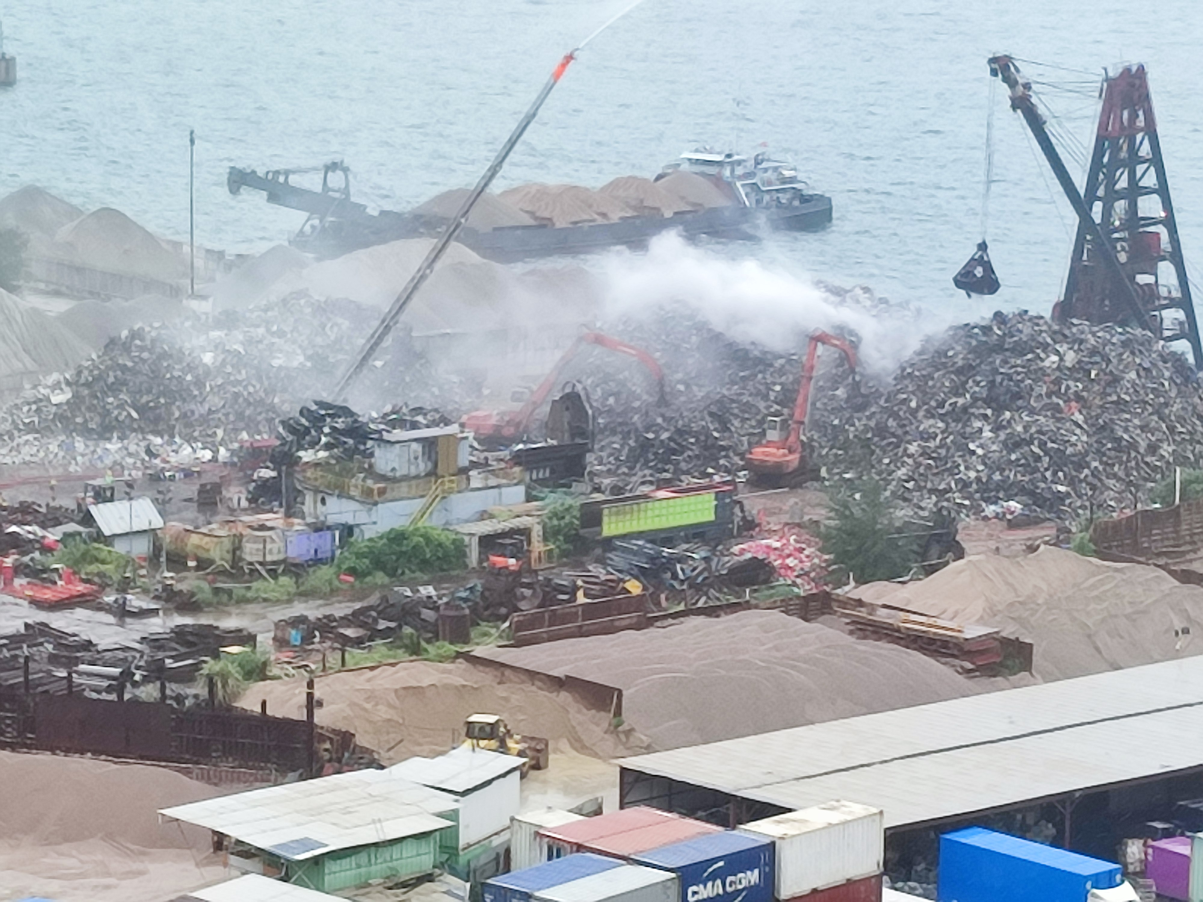 今日清晨5時38分,青衣路69號近油庫一間鐵廠疑有大批廢鐵着火焚燒,消防接報趕抵現場出動雲梯開喉撲救,由於現場火勢猛烈,消防要由青衣路拖數百米喉到現場增援協助灌救。至早上8時許火勢仍未救熄,遠處可見煙霧瀰漫。初步消息指,現場無人受傷亦毋須疏散。