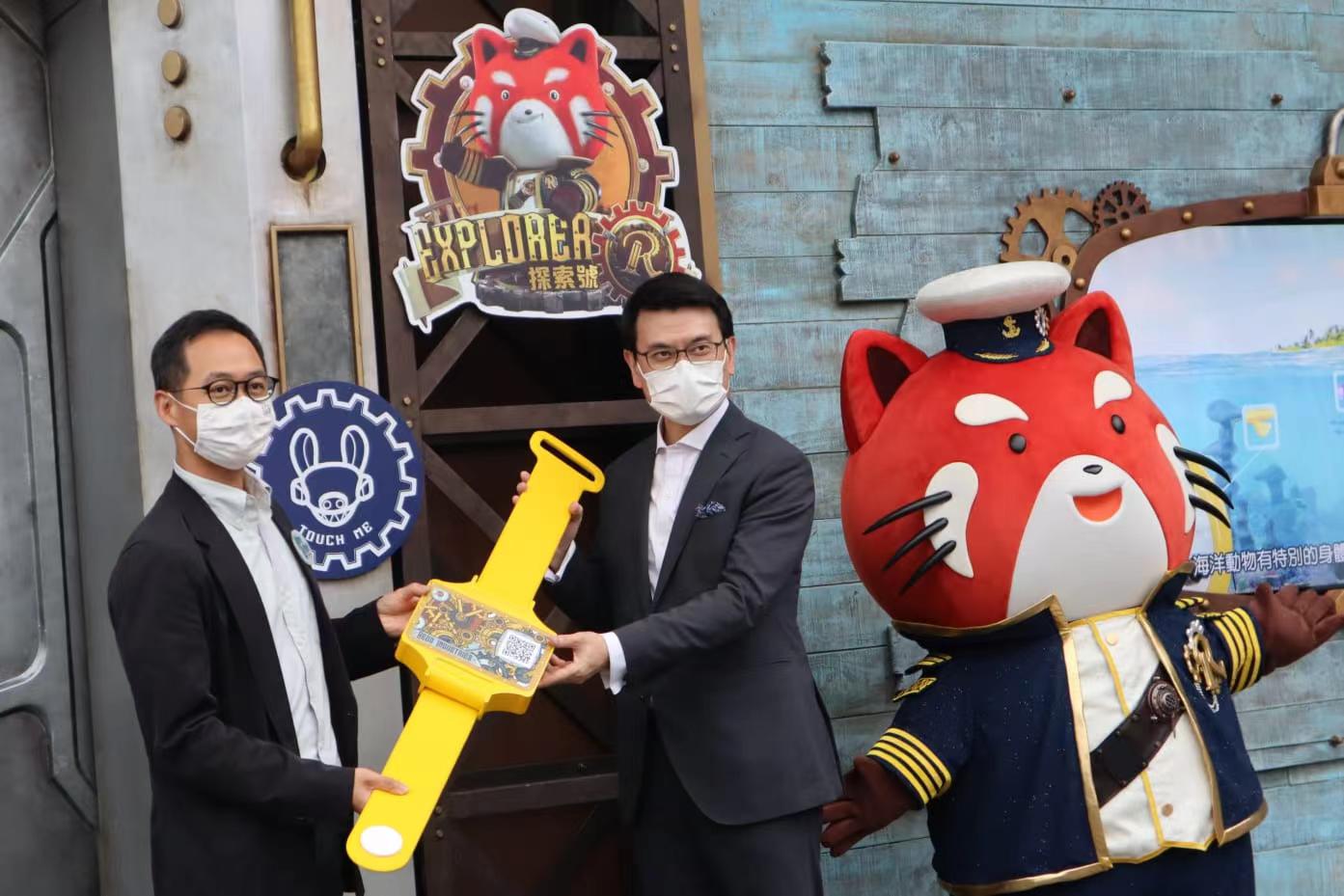 海洋公園全新科技互動體驗館「探索號R」,連同一系列融合保育與教育元素的精彩活動今日(29日)正式於威威天地及公園各個指定地點登場。商務及經濟發展局局長邱騰華、商務及經濟發展局常任秘書長(工商及旅遊)利敏貞、旅遊事務專員沈鳳君以及海洋公園副主席龐建貽、海洋公園行政總裁黃智祖和海洋公園總經理陳善瑜等人出席揭幕儀式。