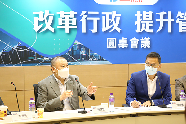 民建聯今日(29日)舉辦「改革行政 提升管治」圓桌會議,並由副主席張國鈞和立法會議員陳恒鑌主持,而香港政策研究所董事馮可強、香港城市大學公共及社會行政學系教授陳漢宣和前食物及衞生局政治助理陳凱欣則擔任嘉賓、發表意見。