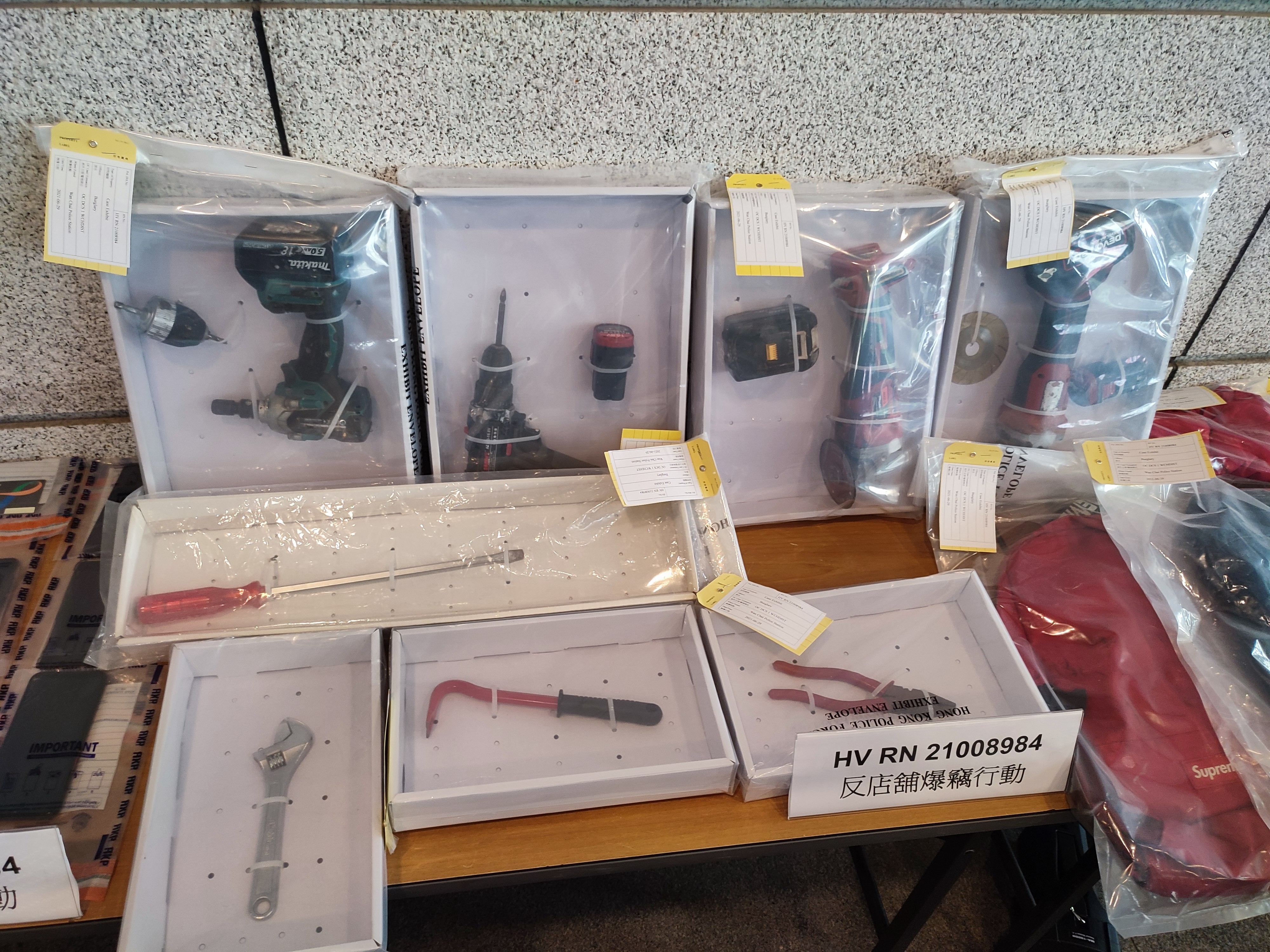 警方昨日(29日)淩晨1時到銅鑼灣利園山道一單位埋伏,先拘捕3人,並在疑犯身上搜出1.2萬元現金和一部手機,相信是案中失物;同日早上搜查主腦在北角租住的一個單位,再拘捕一名43歲菲籍女子,檢獲一批爆竊工具;至晚上再在北角拘捕一名英籍男子。警方相信已瓦解該爆竊集團。
