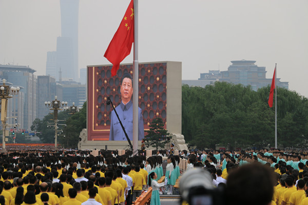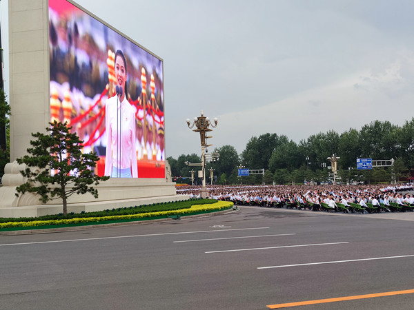慶祝中國共產黨成立100周年大會今日上午8時在北京天安門廣場隆重舉行。隨着太陽冉冉升起,首都群眾從各個方向朝天安門匯聚而來。廣場人頭攢動,人們滿懷激情迎接中國共產黨的百年華誕。(香港商報駐京辦記者林彬彬 楊淩雲 張宇)
