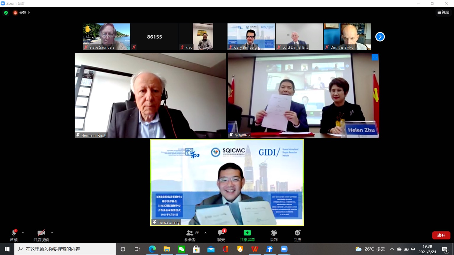 全球仲裁集團管理合夥人西門﹒勞倫斯(Simon Lawrence)、伊斯坦布爾仲裁中心永卡·尤塞爾(Yonca Yücel)、美國佛羅里達州上訴調解員加里·伯恩伯格 (Gary Birnberg)、坎卡拉里亞·卡托尼(Kancalaria Cartoni)、律師事務所合夥人貝爾納多·卡托尼(Bernardo Cartoni)、薩曼莎法律事務所的合夥人薩曼莎·馬修(Samantha Mathieu)、上海東方劍橋律師事務所高級合夥人肖萬華等40餘人共同在線上見證了這一重要時刻。