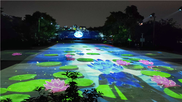 記者了解到,花都湖"四季嶺南"沉浸式光影秀以"春華秋實""四季圓""南國紅豆""山水華彩"四大文化主題為核心,打造出"白天是藝術景觀、晚上是光影秀場"的視覺效果。