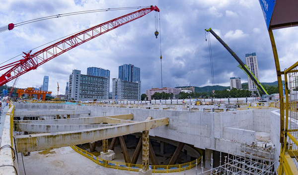 施工過程中,在深鐵集團、中國中鐵聯合體項目部的科學組織下,施工單位中鐵隧道局集團克服了徵地拆遷體量大、施工環境複雜、工期緊等諸多難題。通過BIM技術模擬、優化施工方案,以「開工即是大干、大干就是決戰」的勁頭,配足配強各項施工要素,採取分段、分多作業面同時施工,保證了工程進度。同時發揮項目部黨員先鋒作用,成立黨員攻堅克難小組,人人身上有任務,個個肩上有擔子,加大與地方拆遷辦、街道辦對接溝通工作,凝聚各方力量協同作戰,有效推動徵地拆遷工作進展,為車站主體結構施工創造條件、提供有力支持。