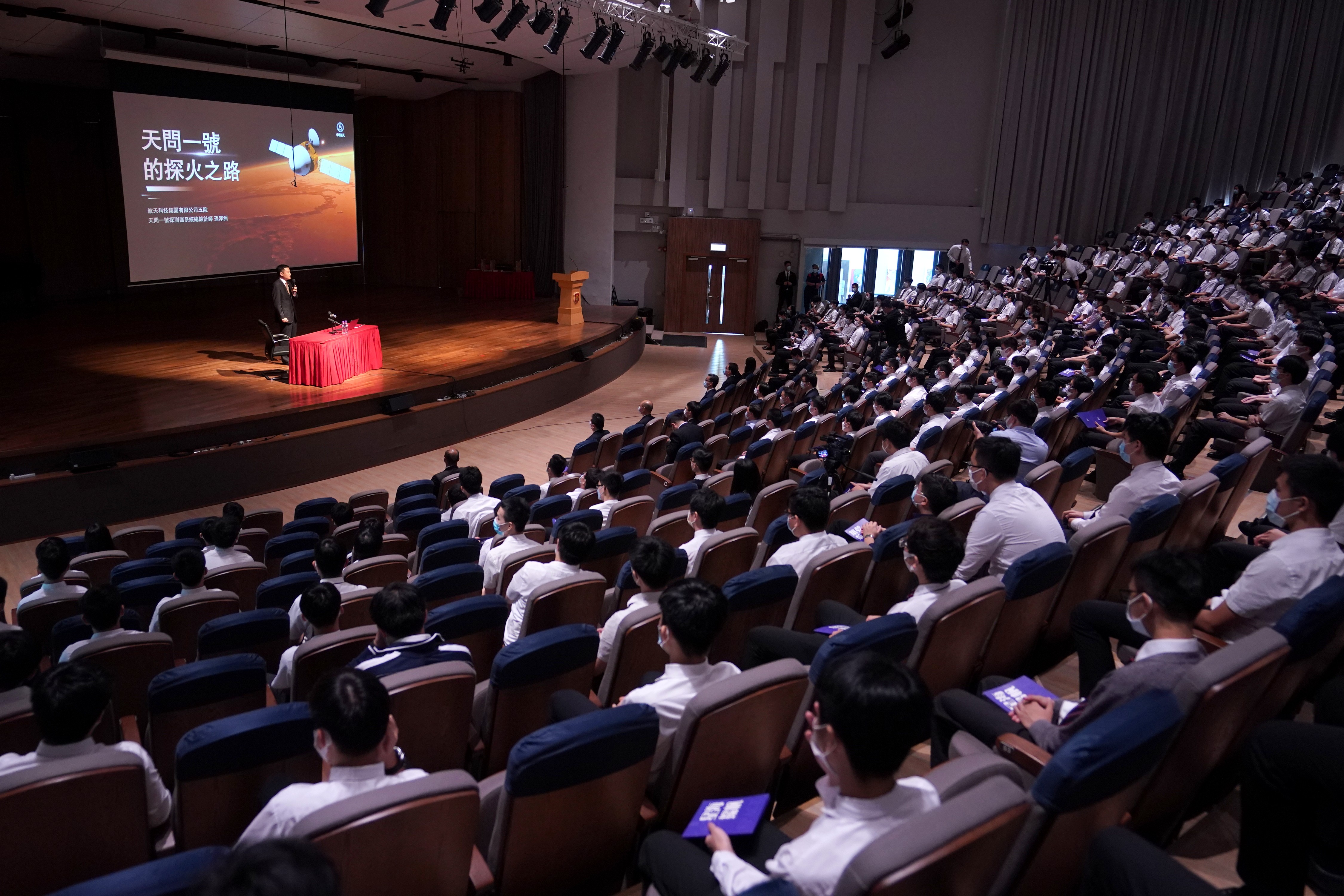 6月25日下午,航天科學家訪港團隊成員、「天問一號」火星探測器總設計师孫澤洲走進香港名校拔萃男書院,向現場中學生主講「天問一號的探火之路」,並與中學生互動交流。中新社