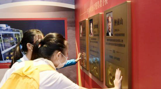 7月9日,学生触摸「共和国勋章获得者」手模。中新社