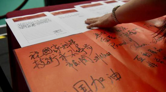 市民写下留言向祖国表达祝福及支持。中新社