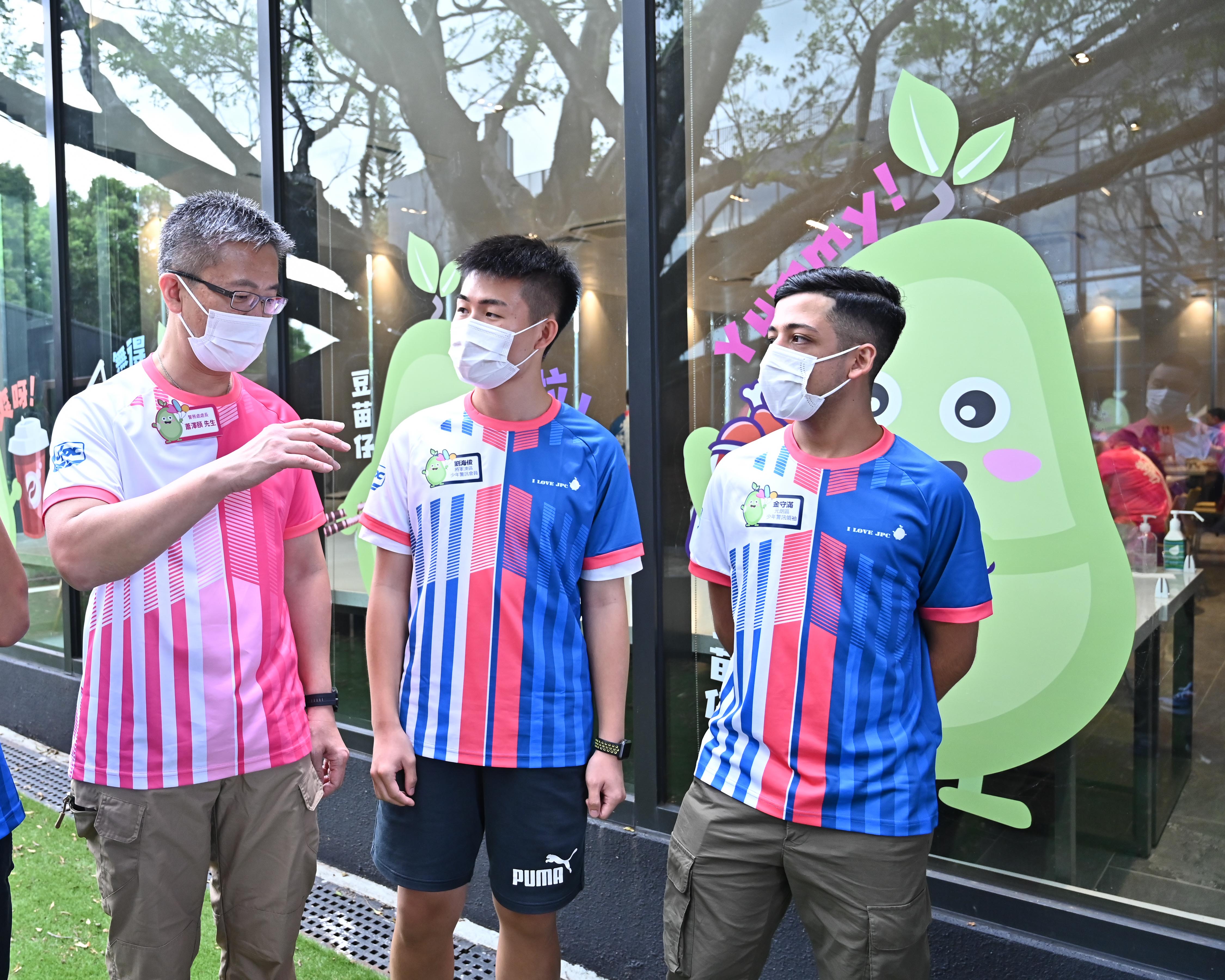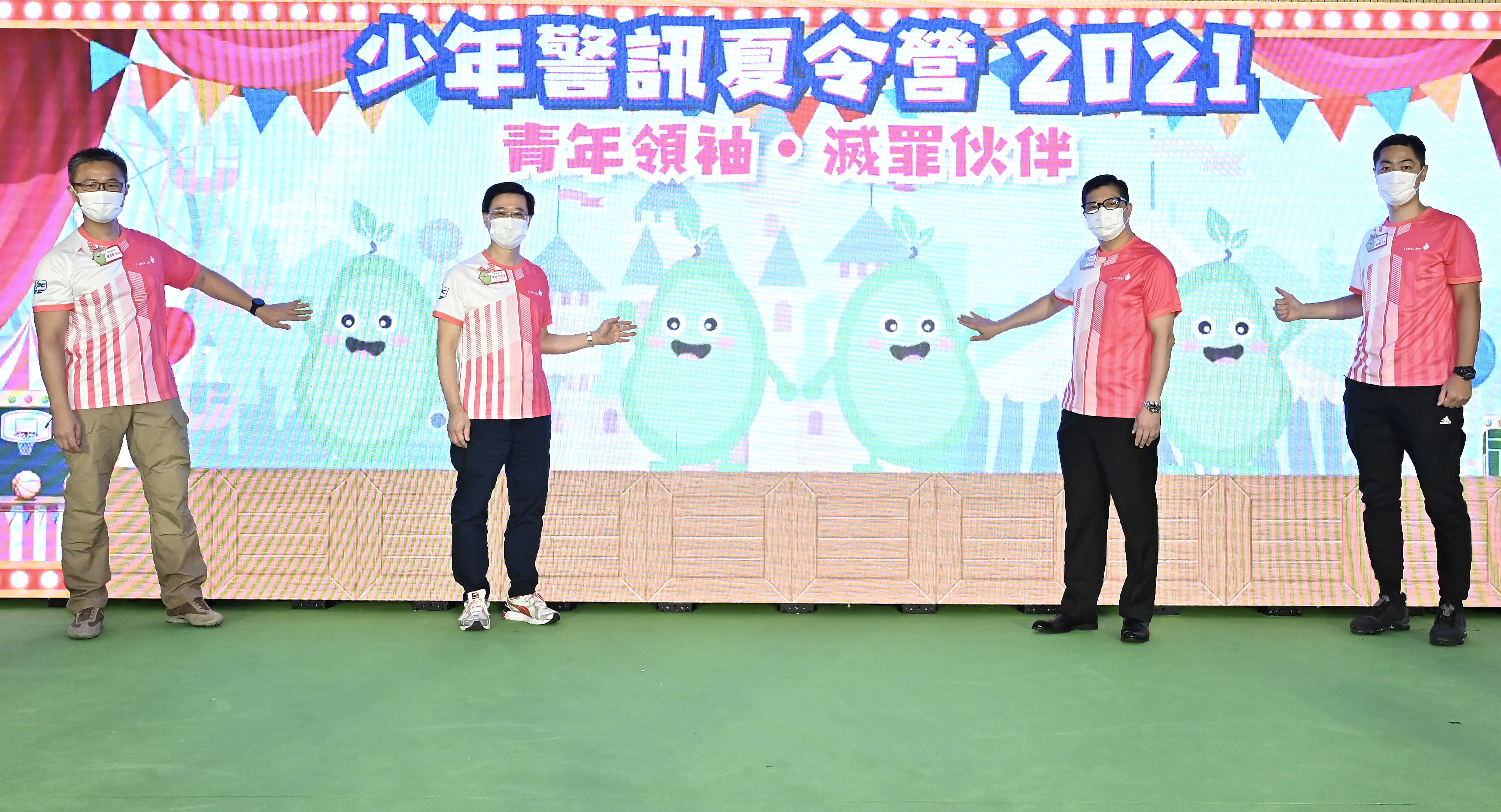 政務司司長李家超、保安局局長鄧炳強和警務處處長蕭澤頤今日(12日)主持少年警訊夏令營開展禮。