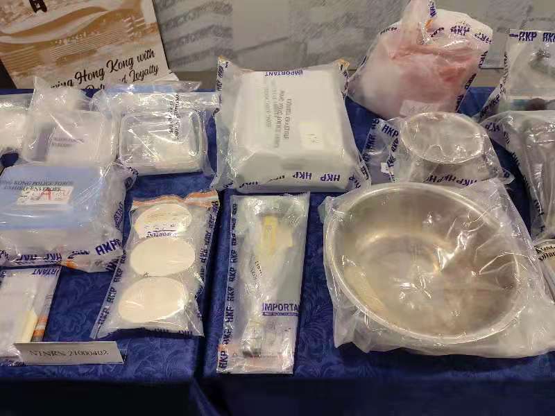 警方根據線報調查後,昨日晚上8時到元朗目標單位搜查,當時屋內有一名21歲男子及其一名17歲懷孕女友。警方在該名男子身上搜出180克可卡因,其後在單位內再搜出4.5公斤可卡因和一批製毒工具,遂將該对男女拘捕,涉嫌「販運危險藥物」和「製造危險藥物」。兩人報稱無業,男疑犯有黑社會背景,相信租住該單位約半年,現正追查其幕後販毒集團。(記者區天海)