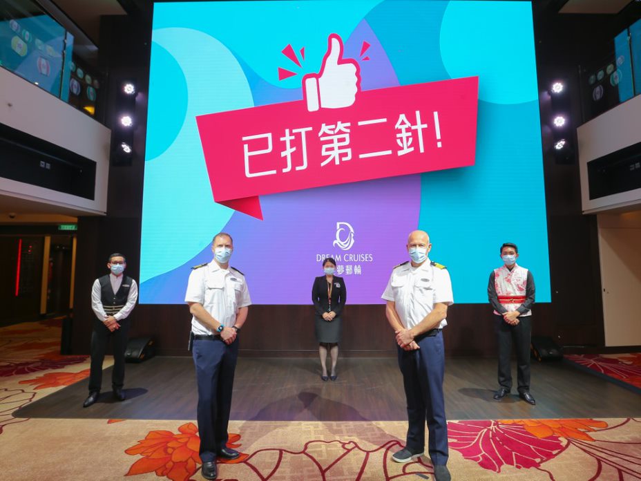 星夢郵輪「雲頂夢號」船員今日(14日)順利完成兩劑復星疫苗的接種,為「雲頂夢號」即將於香港重啟安全郵輪旅遊的籌備工作奠定了重要的基礎。根據港府頒布的防疫指引,「雲頂夢號」於7月30日正式復航前,全體船員必須完成共兩劑新冠疫苗的接種,以保障全船旅客及船員的健康與安全。「雲頂夢號」船員繼於6月23日已經接種第一劑復星疫苗後,今日按照計劃接受第二劑疫苗接種,全體船員於7月30日郵輪首航時, 將完全符合香港特區政府的防疫要求,完成新冠疫苗接種屆滿14天。