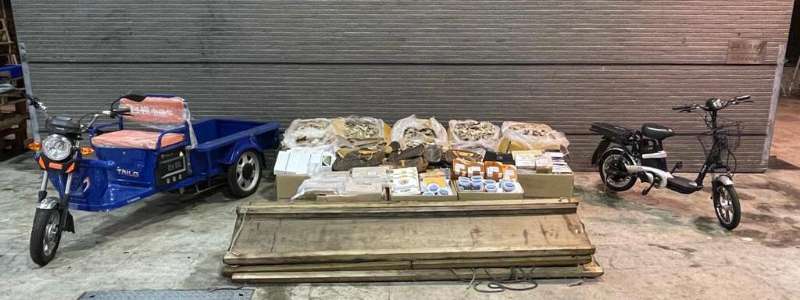 行動中,人員在車上檢獲18箱走私貨物,包括魚翅、雪茄、名牌手袋及電子產品,總值約260萬元,案件現交由海關繼續跟進。