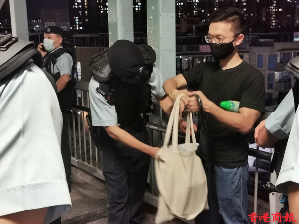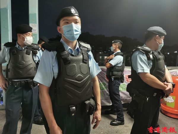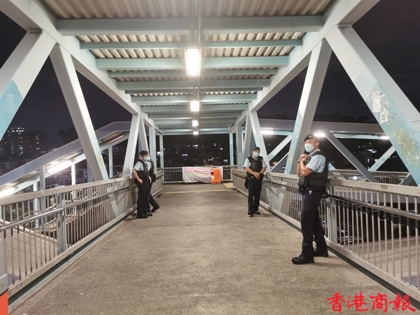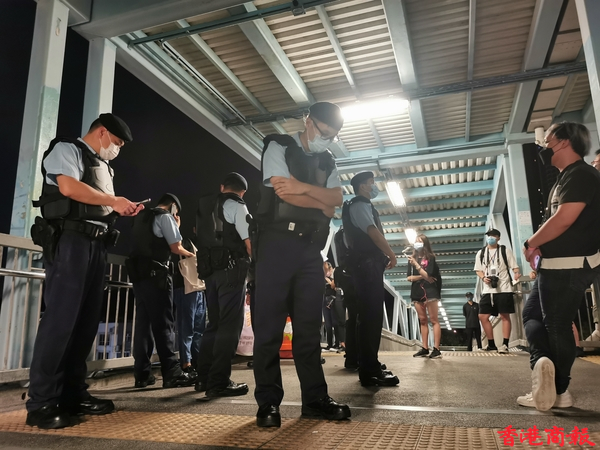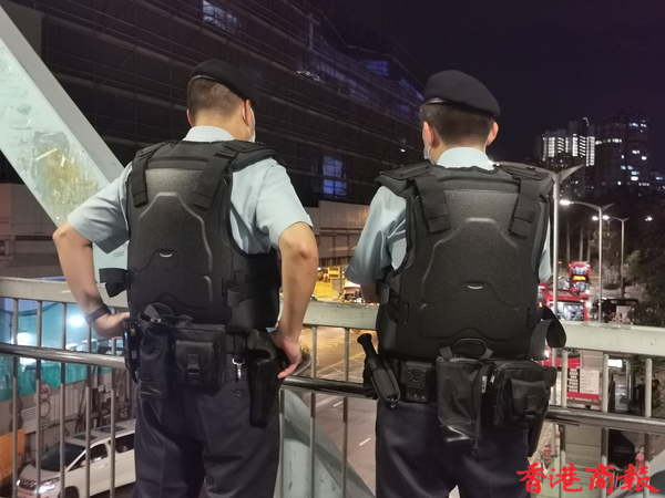 今日是元朗「721事件」兩周年,港鐵元朗站現場暫時平靜,不見有人群聚集,有傳媒在現場靜候。警方派出相關人員在現場巡視。因為此前發生的銅鑼灣刺警事件,警方穿上防刺背心,以小組行動。巡視期間,警方截查了可疑人士。(記者木子)