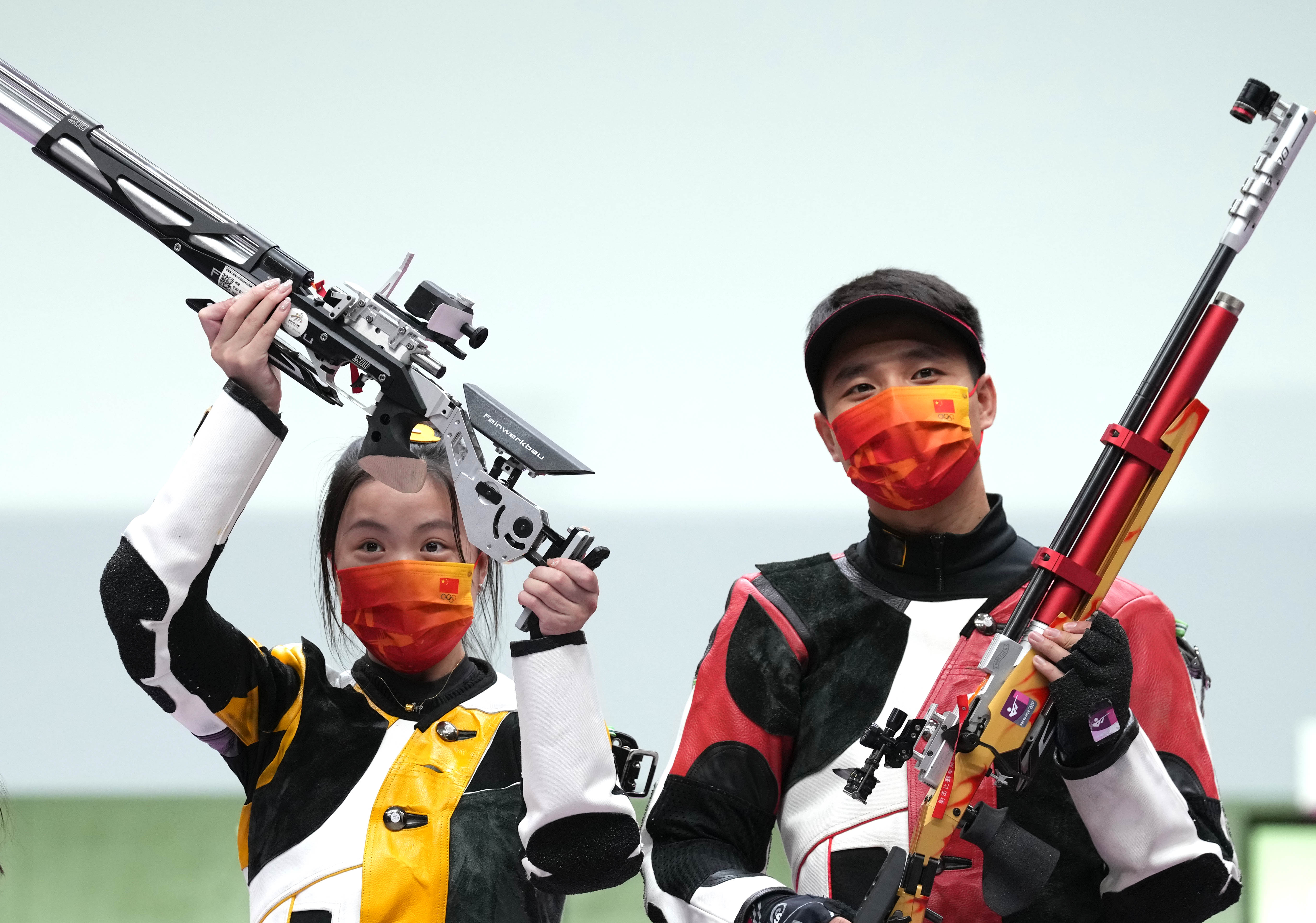 在27日上午的東京奧運會10米氣手槍混合團體賽中,中國組合龐偉/姜冉馨力克俄羅斯奧委會隊,為中國代表團斬獲第七金。