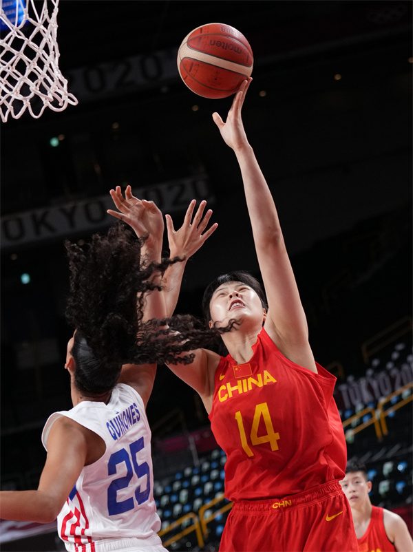 7月27日,當日,在東京奧運會女子籃球預賽C組比賽中,中國隊以97比55戰勝波多黎各隊。(圖源:新華社)