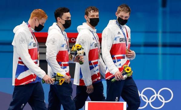 28日,在東京奧運會游泳男子4X200米自由泳接力決賽中,英國隊奪得冠軍,俄羅斯運動員和澳洲隊分獲二三名。