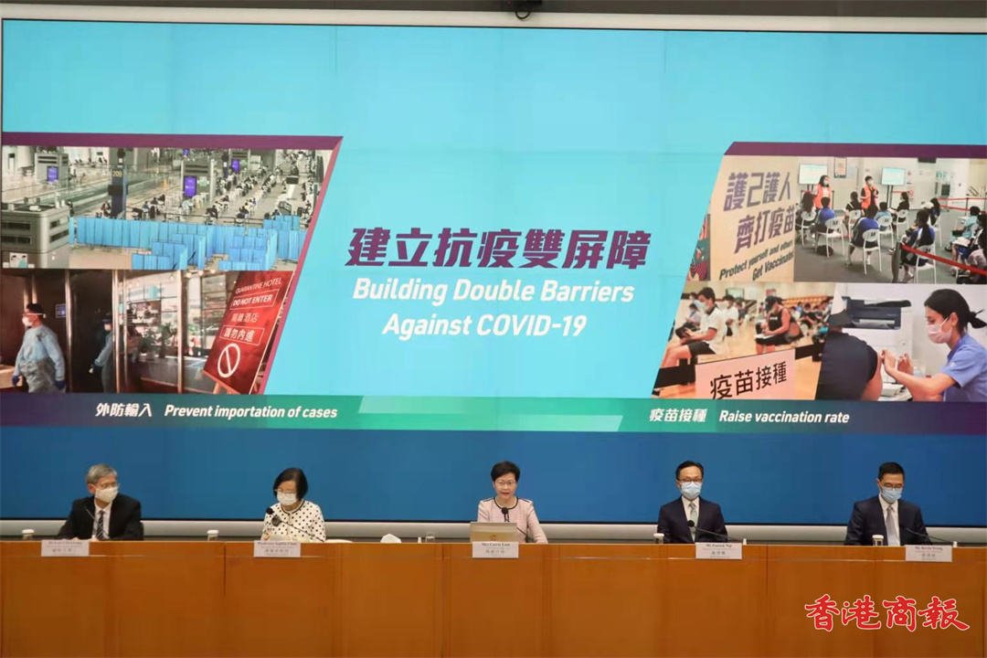 林鄭月娥亦提到,本地疫苗接種率仍有所上升,至今已佔本地人口47.9%,惟現今不是鬆懈的時候,全球疫情仍然嚴峻,並進入新一波疫情;加上變種病毒株廣泛傳播,風險較高,而本地的情況方面,489宗懷疑涉及變種病毒,當中108宗為已確認變種病毒。