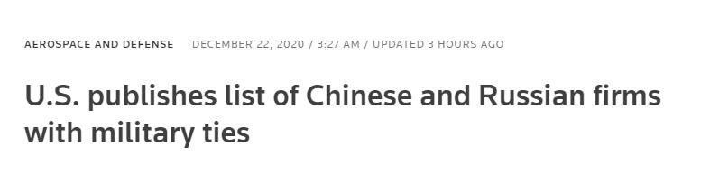 此前11月23日,路透社援引一份草稿報告指,美國即將宣布89家中國企業有「軍事聯繫」,並以此為理由,限制美國企業與這些中國企業合作,或向這些企業出售產品、技術或服務。