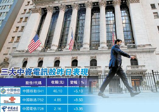 這世界變化快——紐交所突然取消將三大電訊商除牌,消息帶動港股再展升勢。昨日恒指高見27690點創逾一年新高,收升177點或0.64%。內地三大電訊商中,聯通(762)升8.5%,為表現最好藍籌;中移動(941)升5.13%報46.1元;中電信(728)升3.35%報2.16元。分析人士認為,美方以務實態度處理事件,反映中國企業資源對於美國市場而言仍是重要的引擎。