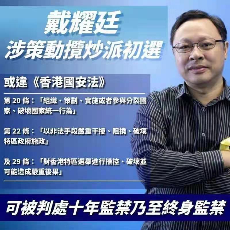 去年7月民主派「初選」發起人戴耀廷及多名參選人,今早(6日)約6時同時遭警方國安處上門拘捕,據悉被捕人士疑因參與「初選」,涉嫌干犯香港國安法中的「顛覆國家政權罪」。據了解,警方國安處拘捕至少约52人。