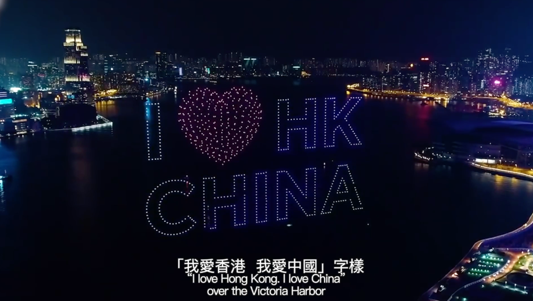 第四個瞬間,是2020年最後一天,TVB與內地最受年輕人歡迎的網絡平台B站,聯合製作跨年晚會。千架無人機在維港上空排出「我愛香港,我愛中國」字樣,一時間兩地網友「香港明天更好」的彈幕刷屏。