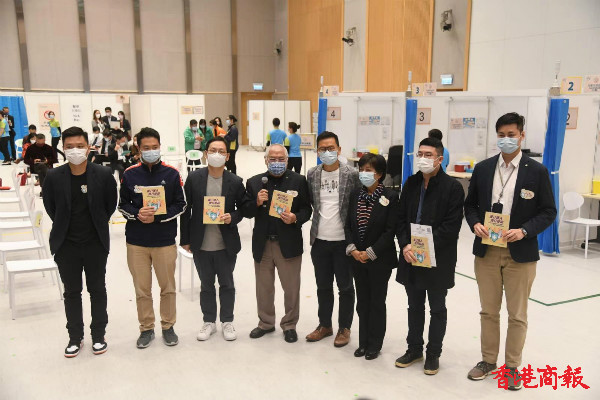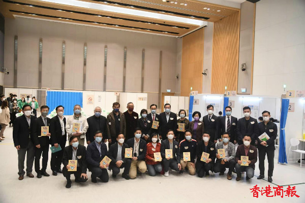 民建聯陳恆鑌在現場開手機直播,聶德權、陳肇始即場加入,呼籲市民接種。