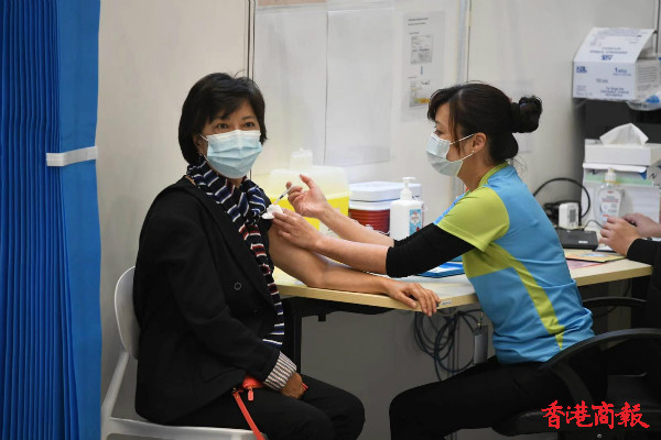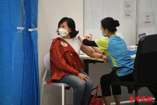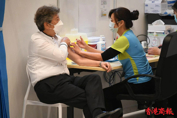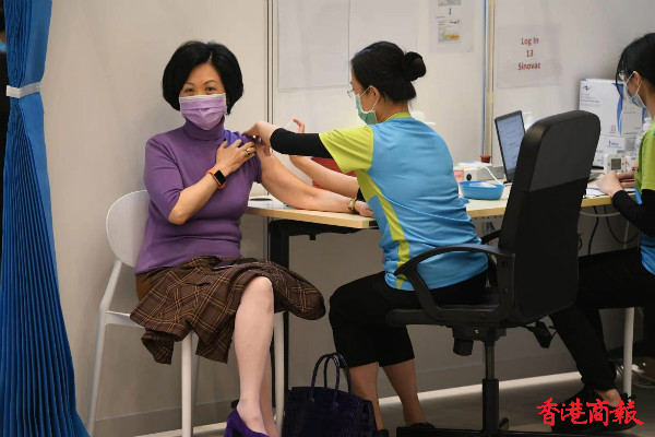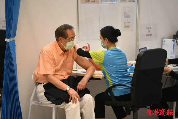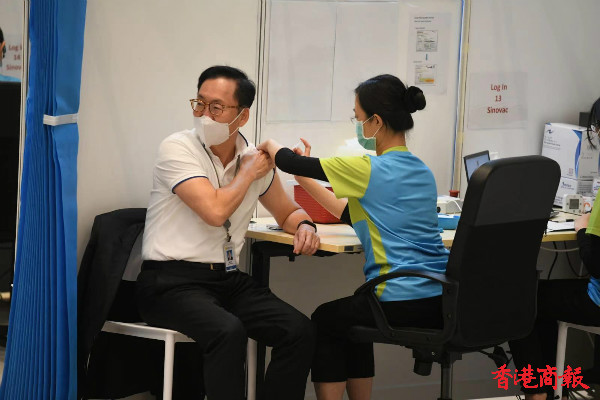 行政會議成員及立法會議員今日(22日)中午到政府總部接種第二劑科興新冠疫苗。行政會議成員包括葉劉淑儀、張宇人、湯家驊、張國鈞、李國章、任志剛、黃國健等均有到場接種,而立法會議員則跟隨其後,包括謝偉俊、麥美娟、蔣麗芸、黃定光、陳健波、周浩鼎、柯創盛、何俊賢等人。